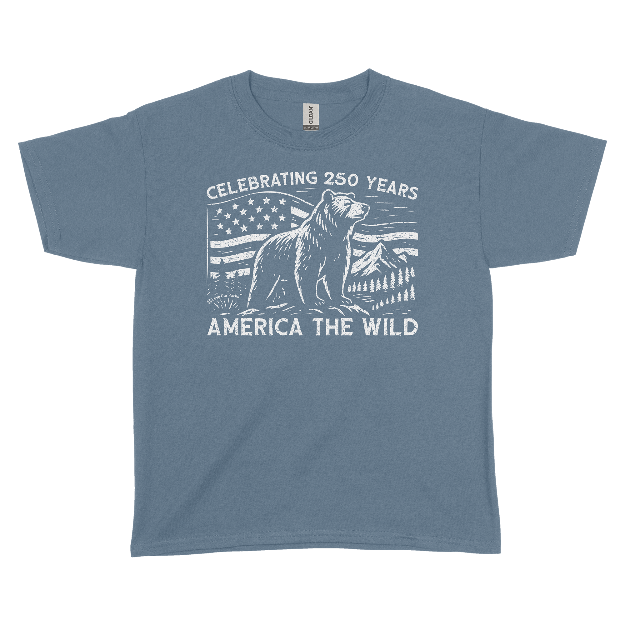 Celebrate the king of the prairie with our Be Wild Bison youth tee. Bold “BE WILD” lettering runs through a classic bison silhouette with hand-drawn distressing and sunburst rays—an ode to wide-open grasslands and big-sky freedom. Perfect for your junior ranger's next adventure.