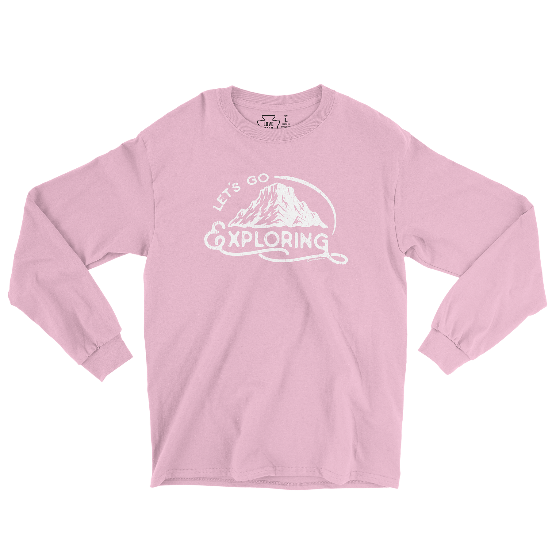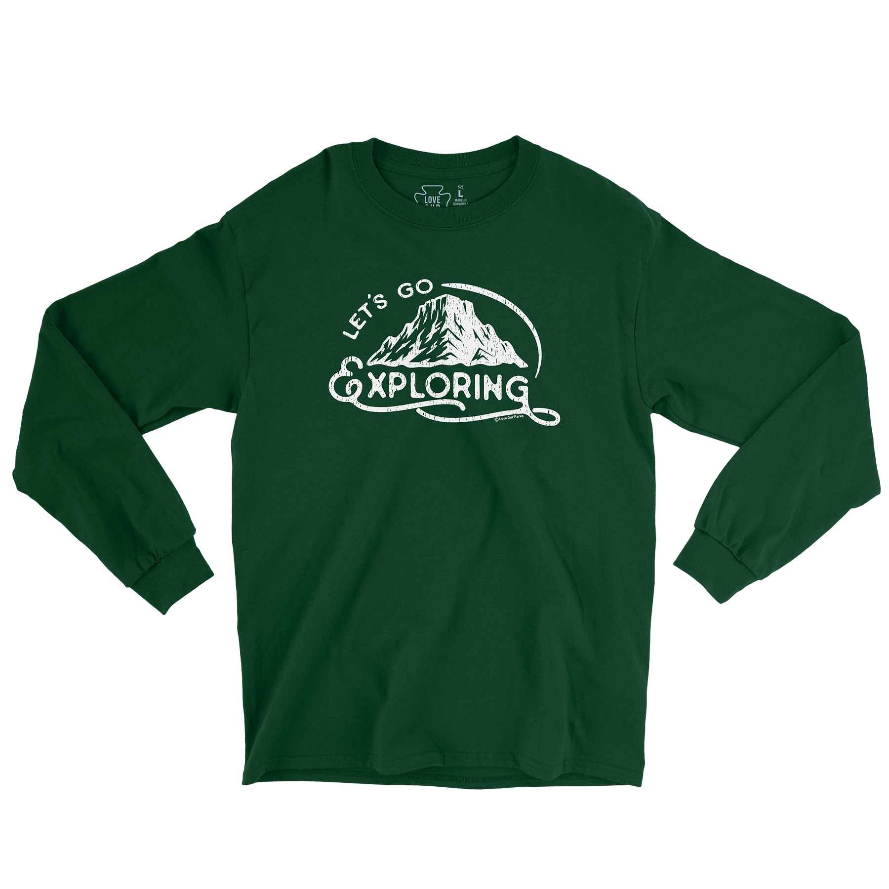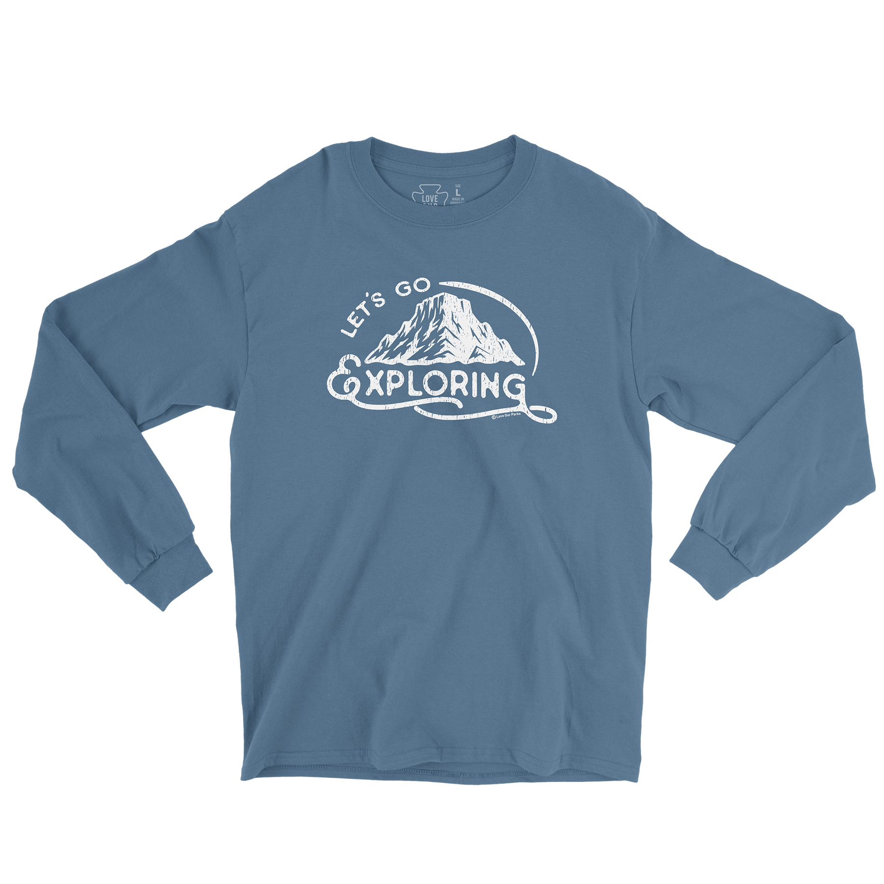 Our Let’s Go Exploring long sleeve tee is your call to hit the trail. A bold mountain peak and hand-drawn script capture that first-light energy of loading up the car, unfolding the map, and chasing new views across America’s National Parks. Soft, easy-wearing, and ready for whatever’s around the next bend.