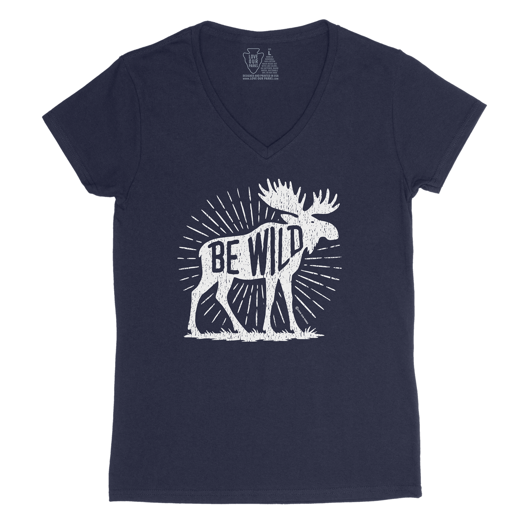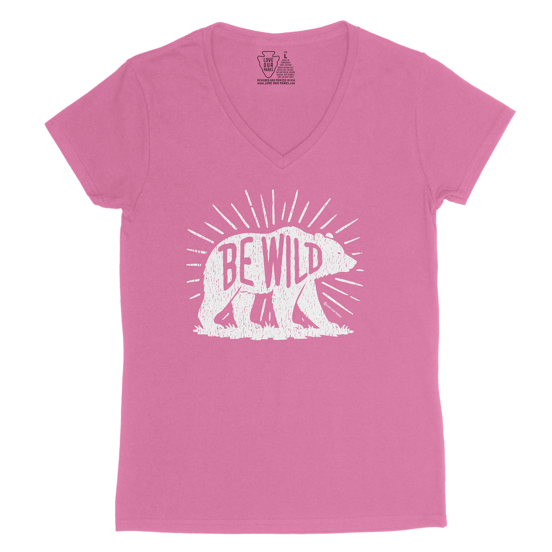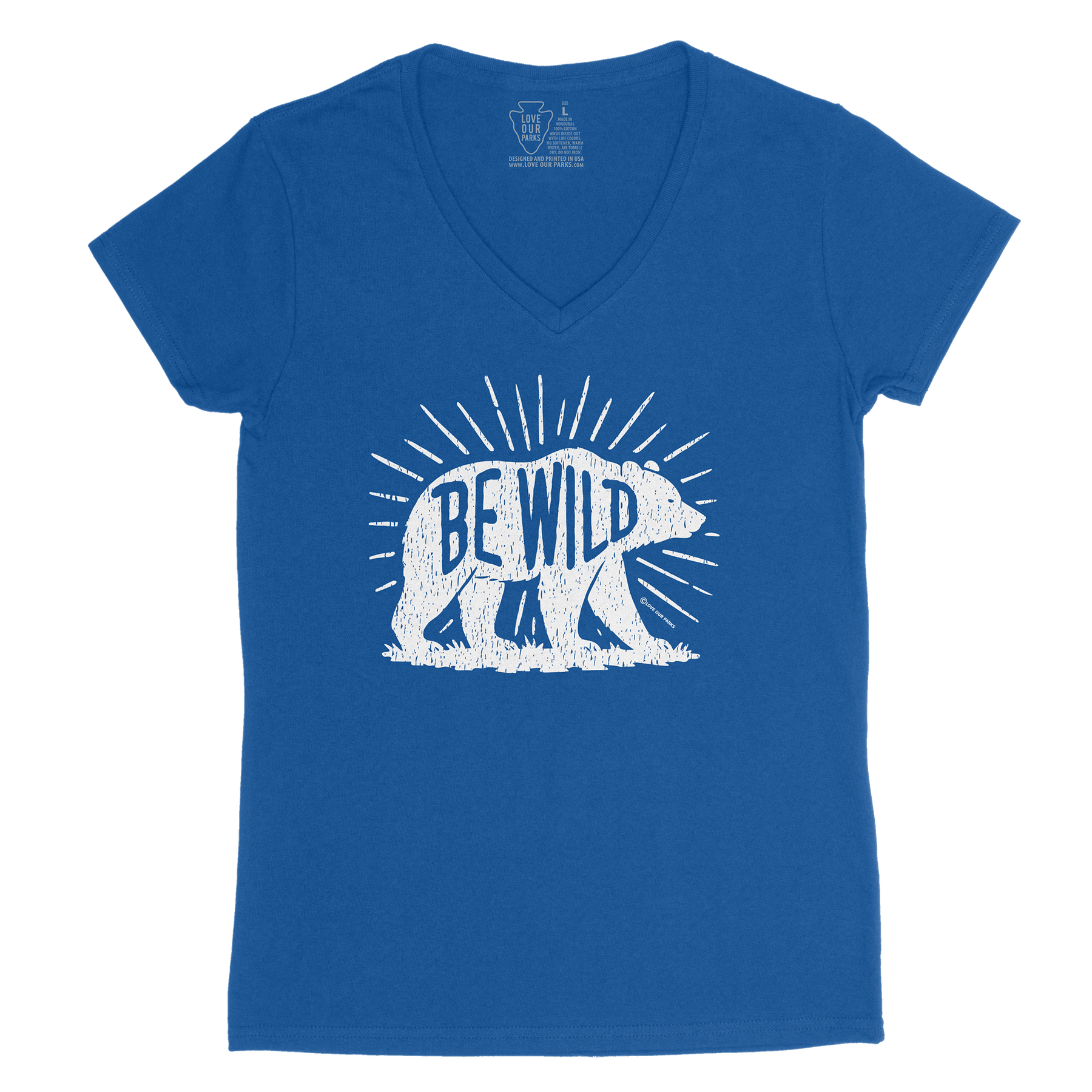 Channel rugged mountain energy with the Be Wild Bear women's v-neck tee. A powerful bear silhouette frames the “BE WILD” message, finished with vintage texture and radiant trail-sun rays. It’s a wearable reminder to take the steep path, chase the views, and respect the wildlife we share it with.