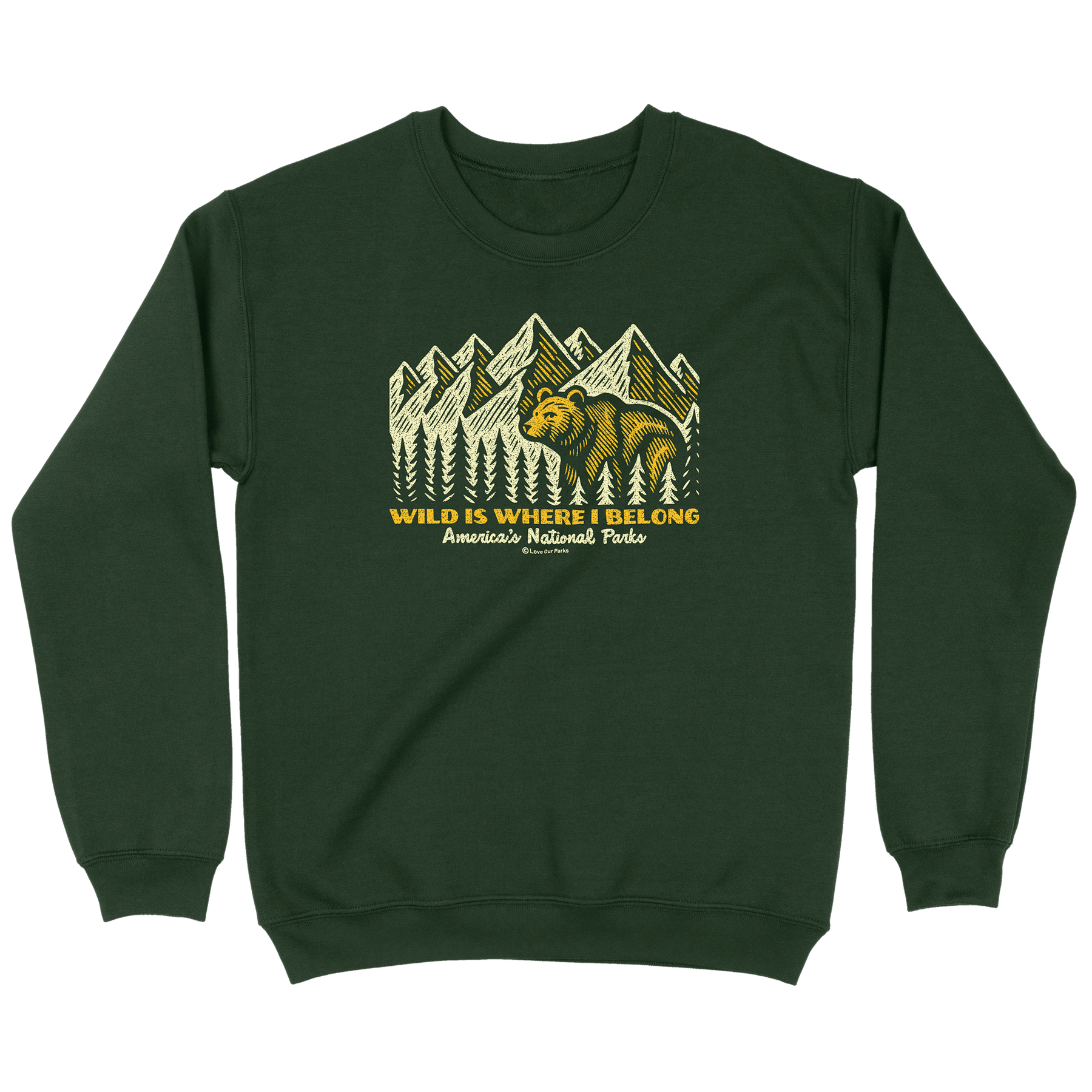 Show your love for National Parks with our Wild Is Where I Belong Sweatshirt. Featuring art of a grizzly bear emerging from a pine forest beneath rugged mountain peaks, this design captures the untamed beauty of America’s National Parks. With the bold message “Wild Is Where I Belong”, it’s a tribute to the spirit of the wild—and to those who feel most at home under open skies and towering trees.