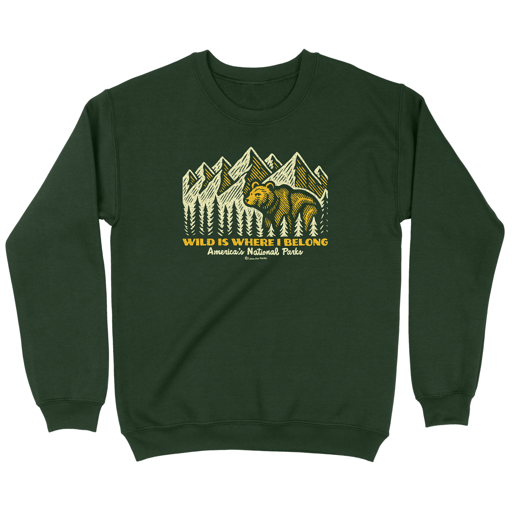 For those who feel most at home on the road, this sweatshirt is for you. Featuring a vintage camper design and the phrase “Life Rocks When Your Living Room Rolls,” it captures the freedom of life on wheels and the beauty of waking up somewhere new. Designed and printed in the USA, each tee supports the parks that make our adventures possible.