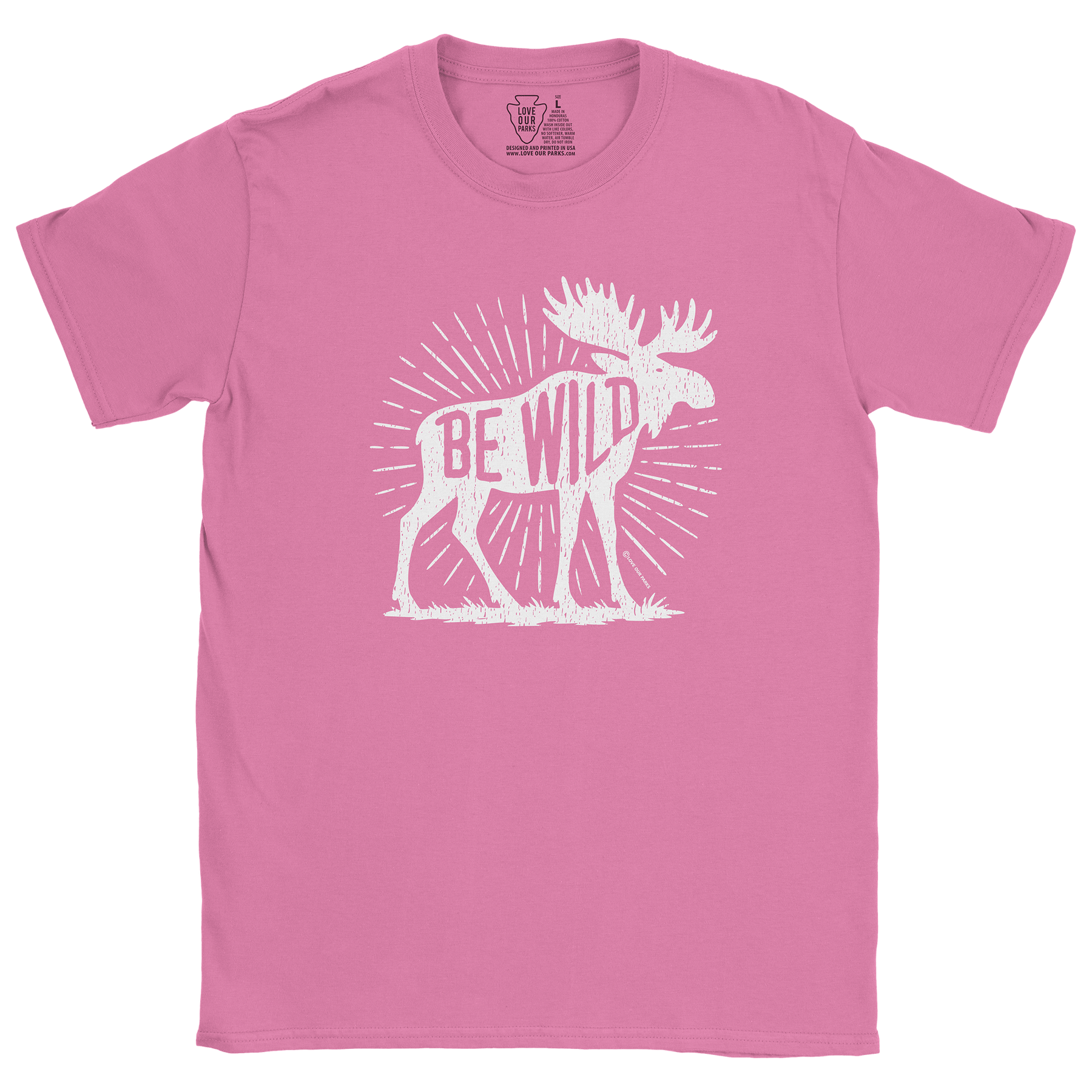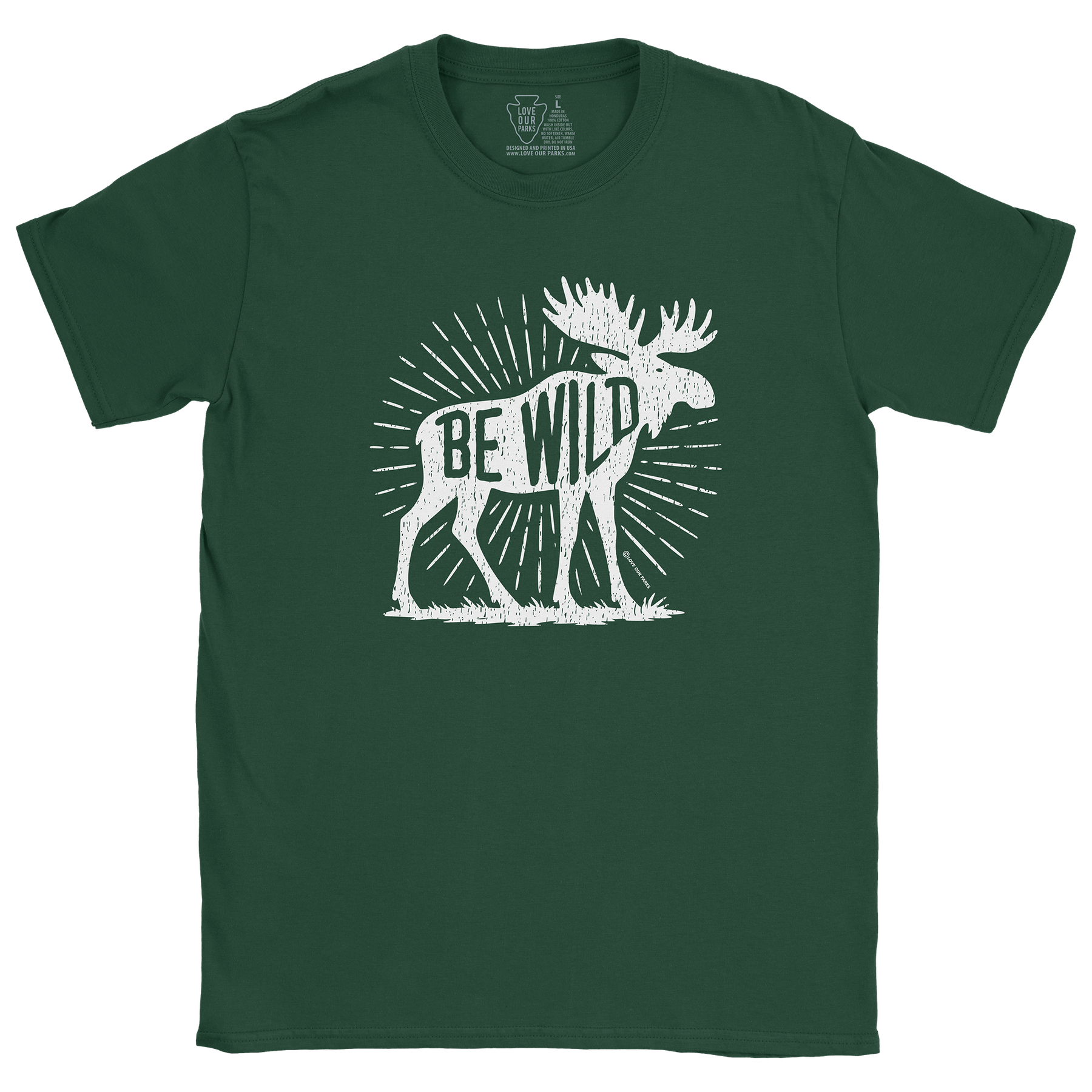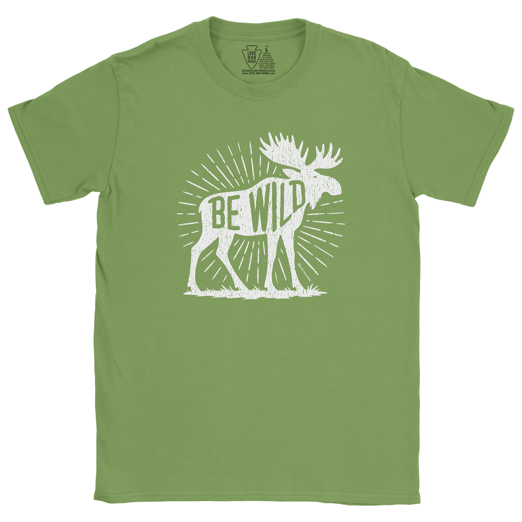 Big, majestic, and unmistakably wild—the Be Wild Moose Tee celebrates the quiet magic of northern forests and alpine lakes. The moose silhouette carries the “BE WILD” mantra with weathered detailing and sunrise beams, making it a perfect companion for cabin weekends and crisp morning hikes.