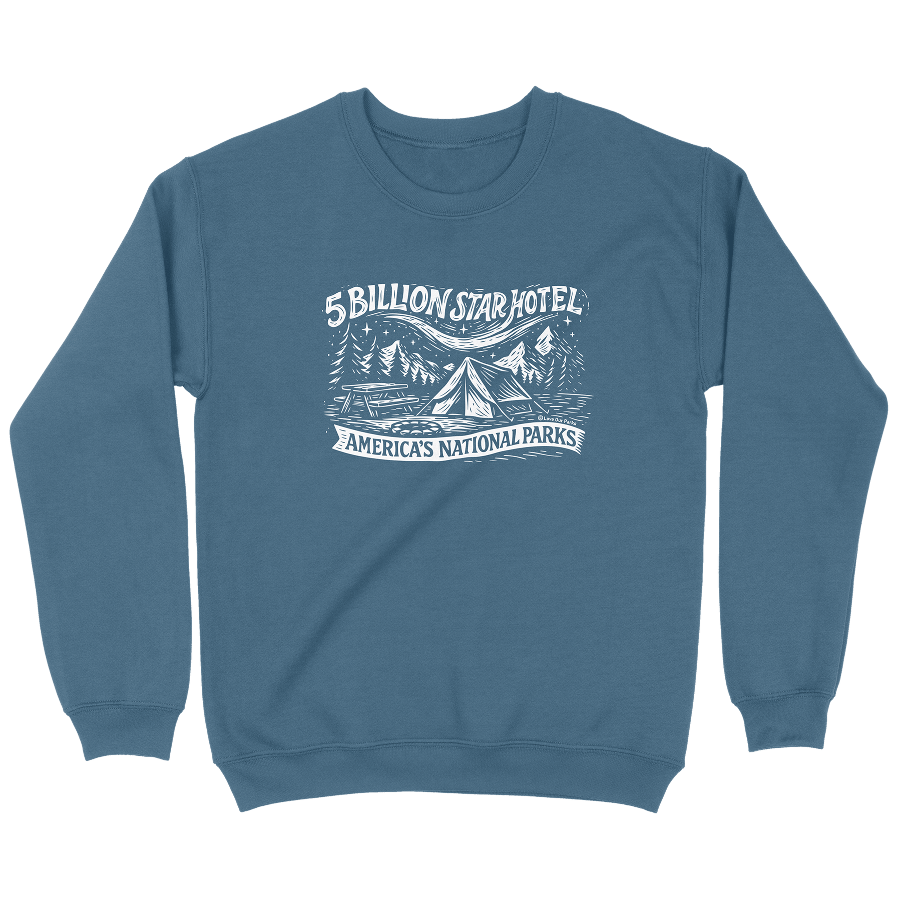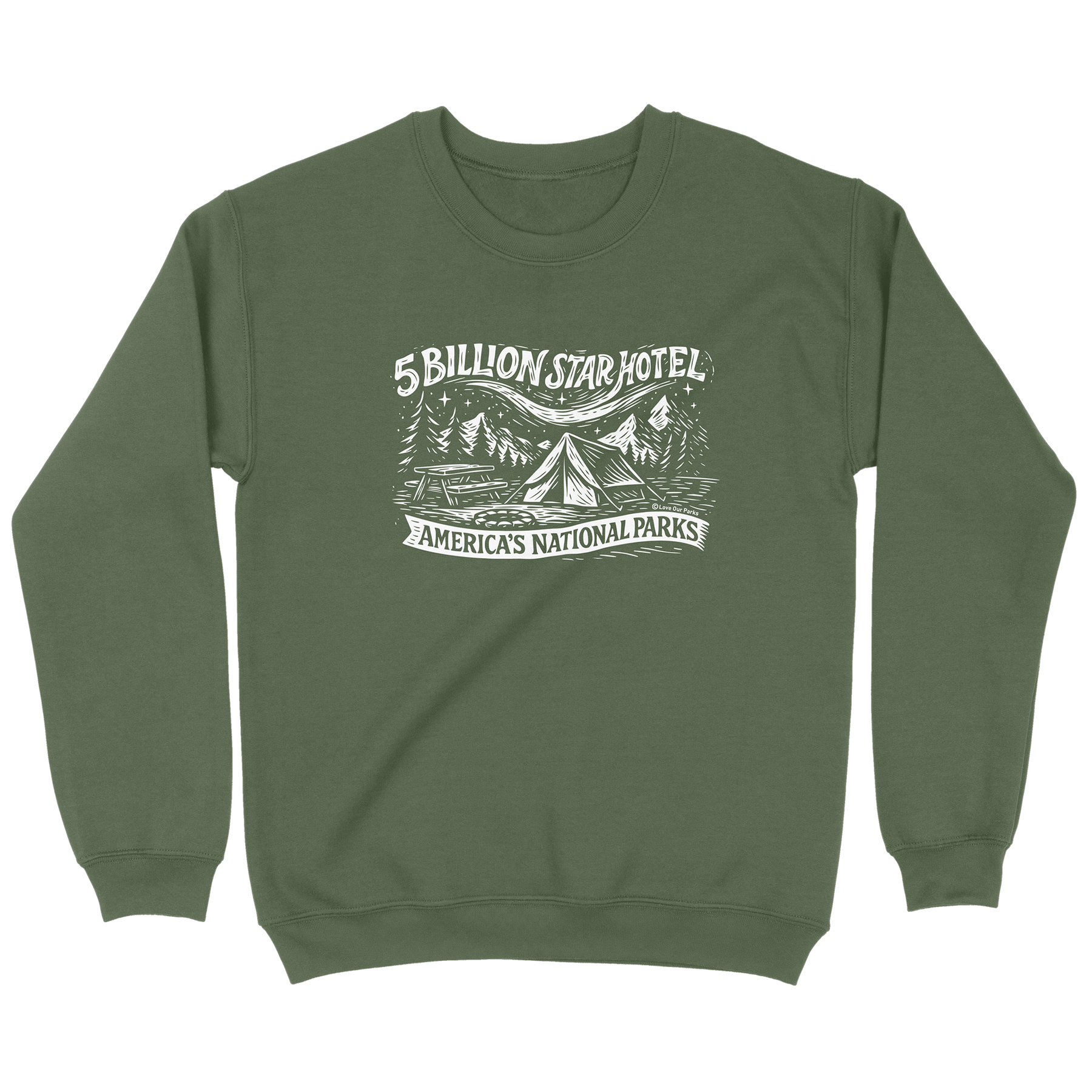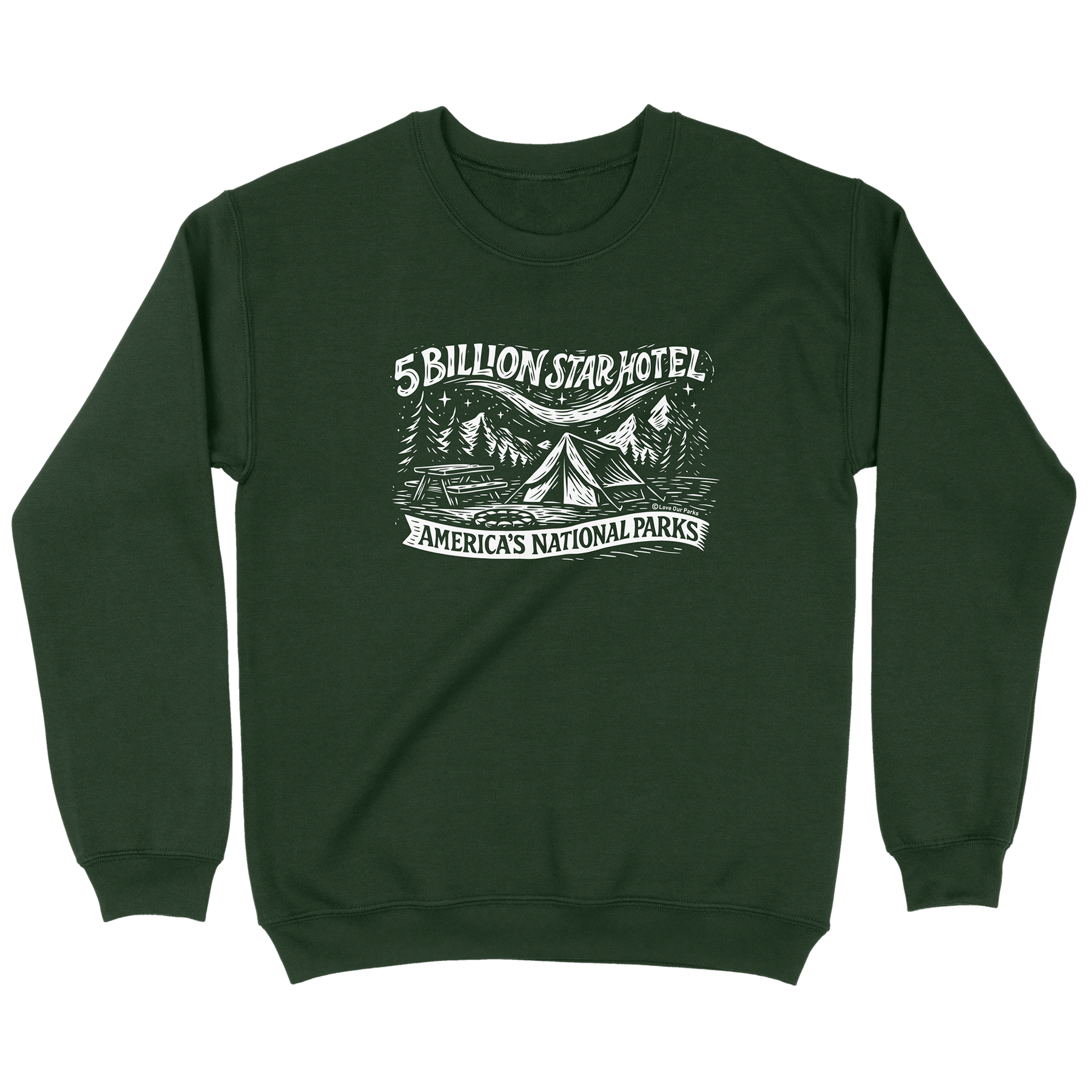 Skip the lobby and check into the best hotel on Earth, your very own 5-Billion-Star Hotel! This sweatshirt features a cozy tent, a crackling campfire, and towering pines beneath a glowing Milky Way sky. It’s perfect for anyone who believes the best nights are spent outdoors rather than indoors. Warm and soft, it’ll be your perfect companion for road trips, campgrounds, and every National Park on your bucket list.